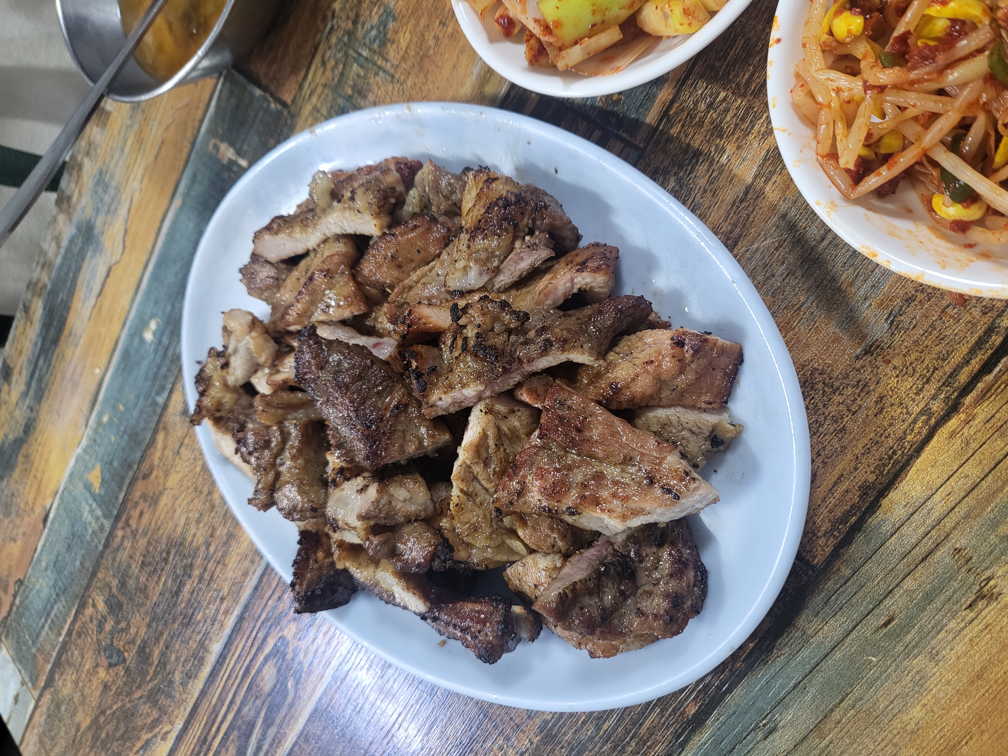 성시경 유튜브 먹을텐데에 나온 것을 보고궁금하던 차에제기동 데이트를 하면서 가보았습니다~!! :D서울한방진흥센터를 방문했던 날,식사를 했던 [감초식당] !!!!!내돈내산 후기 시작하겠습니다! > 감초식당서울 동대문구 약령서길 28 1층 (제기동)https://kko.kakao.com/0-6oAIgWqh 감초식당서울 동대문구 약령서길 28map.kakao.com 주말 점심시간이었는데,약간의 웨이팅이 있었습니다~ 줄서서 20분 정도 기다리니입장할 수 있었습니다ㅎㅎ! 감초식당은 이렇게 밖에서돼지갈비를 연탄불에 구워주는 식당인데요~ 사진에서처럼 직원분들께서계속 고기를 굽고 계셨습니다 :D 안내를 받아 입장하면 밑반찬과상추, 깻잎, 된장국이 나와요~ㅎㅎ성시경이 먹텐에서 된장국을너무 맛있게 먹어서 궁금했는데,..